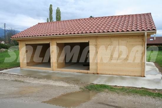 G 3Doppio garage con stanza chiusa annessa, sistema blockhouse, spessore legno cm 4,2 di mq 54,00 mt 9,00 x mt 6,00 x h 2,80 Informativa sulla produzione di serie - Porta ingresso in legno massiccio - Tetto in legno (escluso tegole o similare)