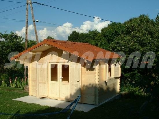 Casetta sistema blockhouse con pavimento e con sporgenza frontale, spessore legno cm 4,2 da: mt 3,00 x mt 3,00 x h 2,50       mt 4,00 x mt 4,00 x h 2,50       Informativa sulla produzione di serie - Porta ingresso in legno massiccio - Infisso, interno con predisposizione vetro semplice ( senza vetro) ed esterno con oscuranti. - Tetto in legno (escluso tegole o similare)