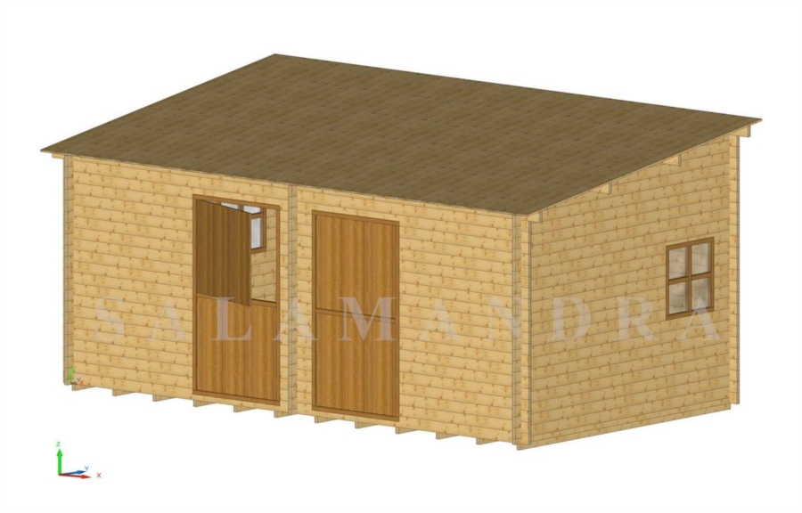 Box cavallo un posto Sistema blockhouse. Descrizione: mq 9,00 mt 3,00 x mt 3,00 x h 3,10 con veranda di mq 6,21 (3,00 x 2,07) Box cavalli due posti Sistema blockhouse. Descrizione: Mq 21,70, mt 6,20 x mt 3,50 x h 3,00 con divisione interna. Box cavalli tre posti Sistema blockhouse. Descrizione: Mq 36,00, mt 4,00 x mt 4,00 x h 3,00 con divisioni interne. Informativa sulla produzione di serie - Pareti esterne ed interna da cm 4,2 - Tetto coperto per tutta la sua superficie con tavole di spessore cm 2 - Porte esterne sono in legno massiccio, divise in orizontale. - Infissi, esterni con oscuranti.