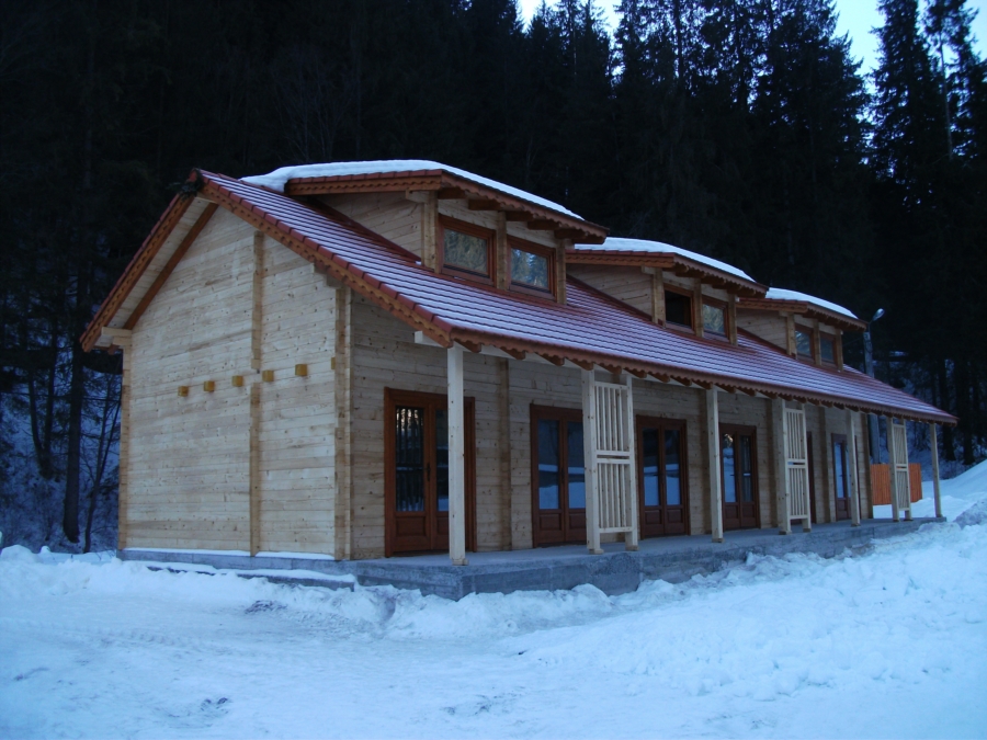 Residence tipo , sistema blockhouse, conposto da n. 6 bilocali da circa mq 34,00 l'uno, disposto su due piani. Descrizione: mq 95,40 piano terra + mq 95,40 primo piano + mq 74,00 verande                     Pareti perimetrali di spessore cm 7 con travi profilati a doppia frezzatura uniti ad incastro                     verticale.                     - Pareti esterne cm 7                     - Pareti divisori interni cm 7                     - Con pavimento in legno PT e PP                     - Porte e finestre in legno con doppio vetro                     - Porte interne legno massello di abete                      - Tetto montato per tutta la sua superfice con tavole di spessore cm 2 ( senza tegole                             o similare)                     - Legno naturale di abete rosso di prima scelta essiccato e non tratato.