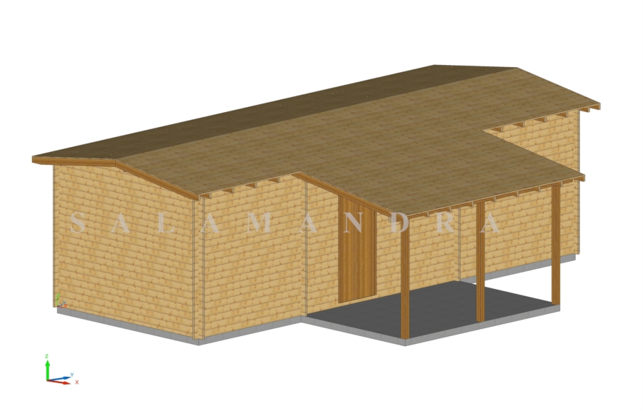 RS3 ResidenceResidence Mq 30,60 (900x340) Sp 4,2 e Veranda Mq 9,25 (370x250) Pilastri 10x10 Descrizione: Porta ingresso interna legno e vetro ed oscurante esterno Porte interne in legno Finestre in legno con predisposizione vetro ed oscuranti esterno Senza pavimento Tetto in legno (senza tegole o similari)